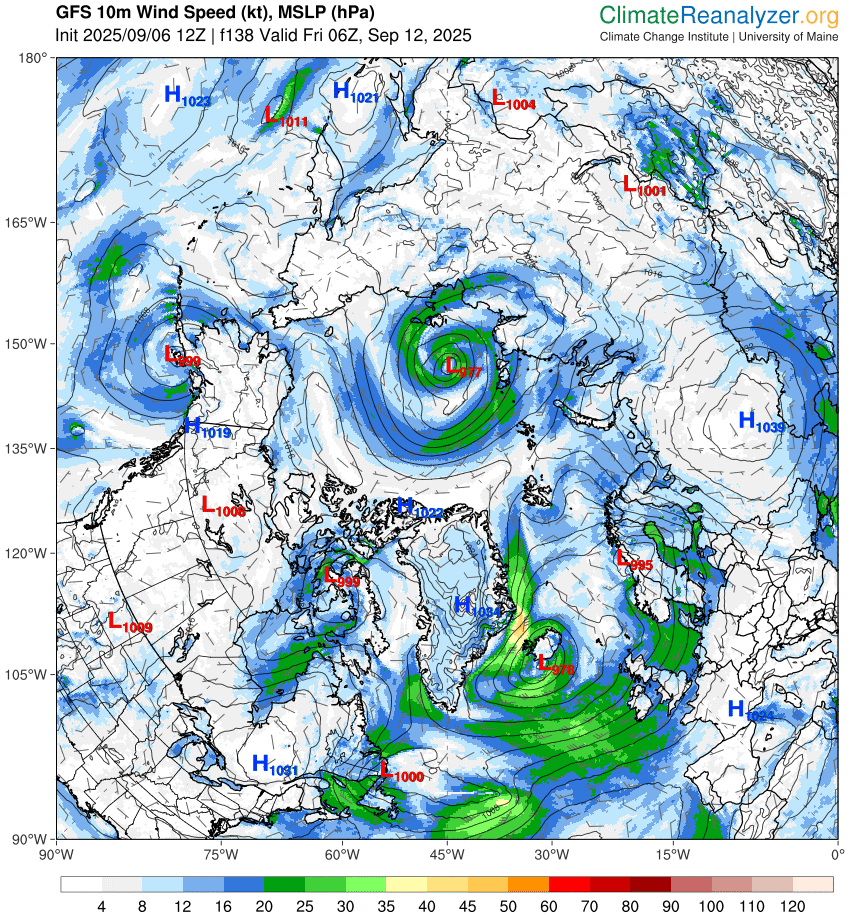 This Wrangel Island LP (storm) is a very interesting event going forward, considering the state of the long, thin sea ice arm of the Wrangel Island Arm.