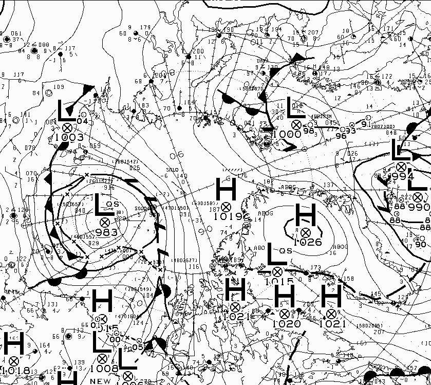 1. The current cyclone bottomed out at 983 hPa at 18Z yesterday according to both GFS and the CMC: