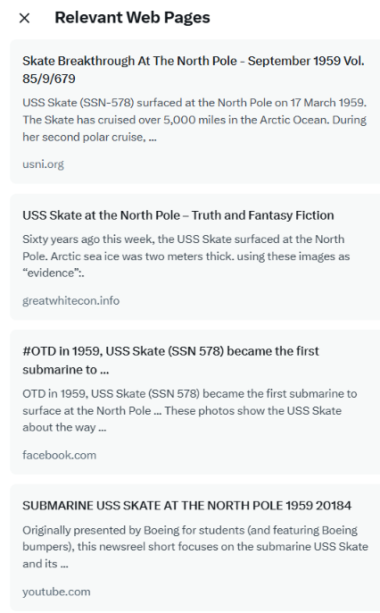 A blog article “USS Skate at the North Pole – Truth and Fantasy Fiction” that collects several of the historic photographs and discusses their context. greatwhitecon.info