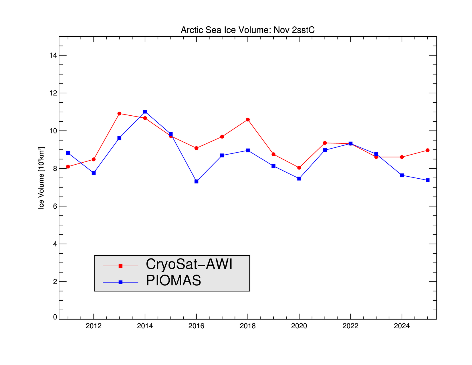As you can see, the “measured” data suggests that sea ice in the central Arctic is thicker than the PIOMAS model shows: