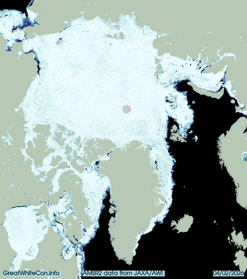 Hudson Bay has fully frozen over during January. However, there is still open water north of Svalbard and in the North Water Polynya. It’s even possible to go swimming in the Nares Strait according to the latest AMSR2 concentration map from the Alfred Wegener Institute: