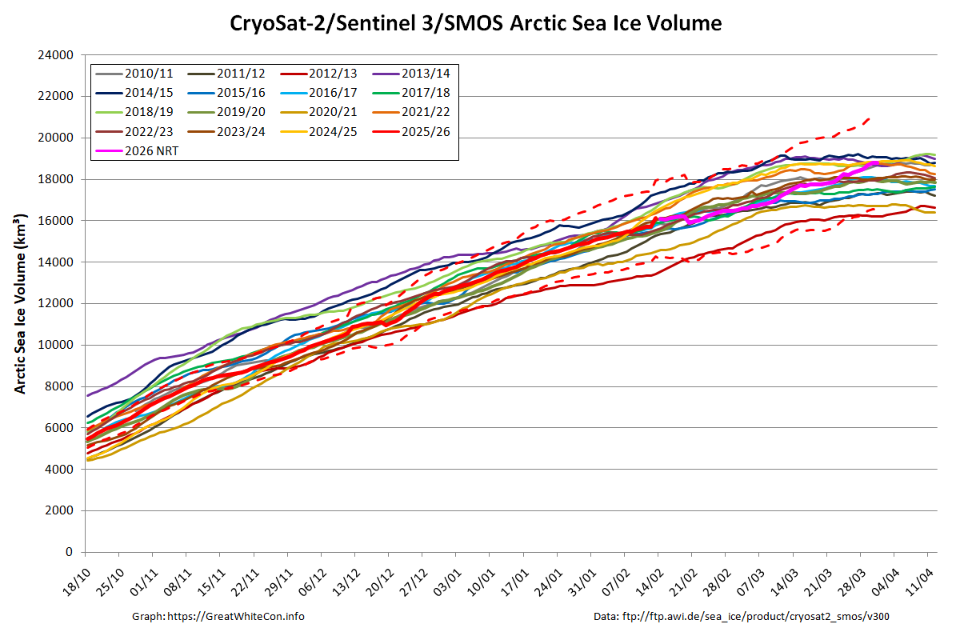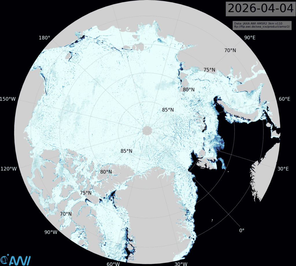 In early April JAXA Arctic sea ice extent is 3rd lowest for the date, albeit in a “statistical tie” with last year: