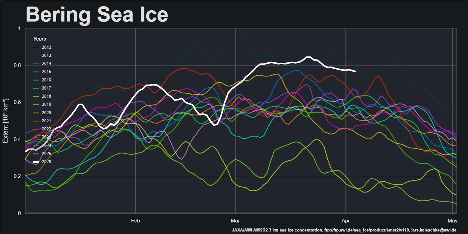 On the other hand extent in the Bering Sea is close to an all time high: