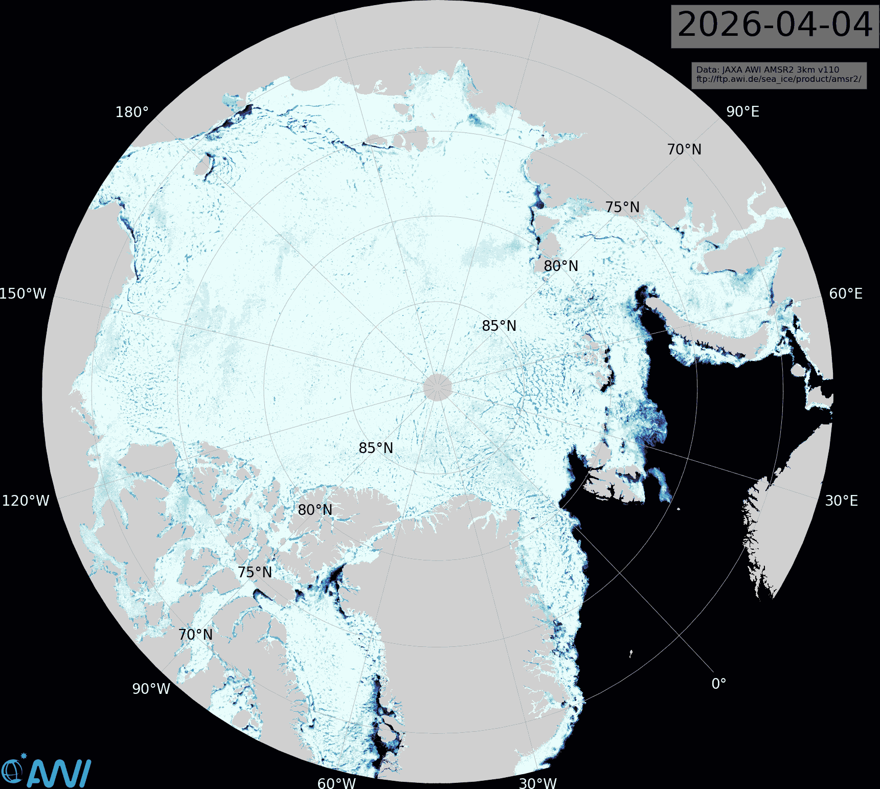 On the Atlantic periphery extent is less extreme, although there is currently open water north of Svalbard: